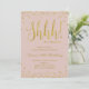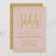Faux gold confetti splatters blush pink party invitation with sparkle design for surprise birthday party. Perfect for modern birthday.