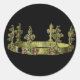 The Gold Royal Crown Classic Round Sticker is a sticker that can be customised. This vintage King or Queen’s crown design is on a modern Black coloured background that can be edited and changed to your liking.