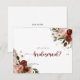 This gold rustic floral bridesmaid proposal note card is perfect for a simple wedding. The design features hand-painted marsala, pink, blush, burgundy and gold flowers with green leaves arranged into beautiful wreaths.