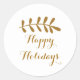 Gold Rustic Leaf Elegant Simple White Classic Round Sticker