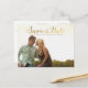 Gorgeous faux gold foil typography on the front of this designer postcard which you can upload into with your own engagement/save the date photo portrait. Easily and quickly personalise this designer professionally printed save the date postcard here and now by just typing over the example text and adding your own photograph. Elegant, chic, simple and classy gold script/cursive typography.