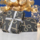 This chic and modern wrapping paper features a dark grey background with patterns of faux gold scissors. Change the background colour and personalise for your needs. You can find more red panda products at my store.