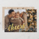 Gold Script 3 Photo Cheers to the New Year Linen Holiday Card