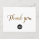 Personalise this simple and easy to use faux gold thank you postcard template with your company's logo, message, name, and return address. Let your clients, customers, patrons know you are grateful for their support during these uncertain times. Featuring a printed modern "thank you" script in modern script.