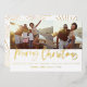 Gold script Christmas 2 photo modern Foil Holiday Card