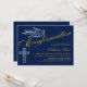 © Socialite Designs. Our beautiful calligraphy confirmation invitation has a dove, cross and beautiful calligraphy text in gold as well as white. The background is dark blue. A lovely invitation that is gender neutral and can be used for a boy or girl. Easily replace our template text with your own. All design elements can be moved, resized or deleted.