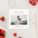 This napkin features words of thanks above your favourite photo and your first names and date below it. We've chosen a warm, modern script for 'Thank You' and added 'for sharing our special day' underneath, with that line separated by the the loop of the 'Y', enhancing its relaxed, intimate charm. This message makes this napkin well suited for your wedding party as an expression of your gratitude and joy in that very moment. The text is a very dark grey that is in fact mostly black, except for the 'thank you' text, which we've highlighted in an elegant gold tone called California Gold. You can of course change any of the text to any colour that suits your style and your day, be it true black or another hue. You can also choose a different font for any or all of the text. You might even want to change the thank you wording or other text to something completely different. We've chosen a transparent background, which lets the colour of the napkin simply serve as the base tone, but you can choose a colour instead. Use the intuitive design tools, your favourite photo and your inspiration to make this napkin uniquely yours and something that's bound to be tucked away and taken home without being used. So you might want to order extra! ;)