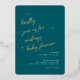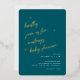 Dark teal baby shower invitations with gold script. Script text will be printed in real metallic foil.
