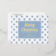 Gold Script Dusty Blue Polka Dots Merry Christmas Foil Holiday Postcard