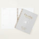 Romantic design features a soft floral flower in white, "Future Mrs.", and the words "Wedding Plans" in a gold typography script against a dove-grey textured background. Easily customise your names and date of choice. The perfect gift idea for the bride-to-be to organise all her wedding planning needs.