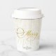 Greet your guests, friends and family with this stylish and modern Holiday Season Christmas paper cups, with a pretty faux gold handwritten script quote "Merry" on an elegant white background. Easily add your event, or any other text, to customise the template.