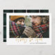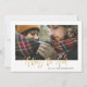 Gold script glory to god stylish holiday card with green tartan backer design. Space for single photo.