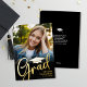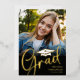 Celebrate your graduate in style with this graduation photo invitation featuring a black and gold design. Personalise with the graduate’s name template, senior photography style, and class of details. The trendy typography design and elegant calligraphy script create a modern yet timeless look. Perfect for high school or college graduates, this simple minimalist invite is a chic way to announce your grad party in style.