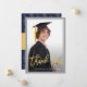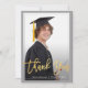 Gold Script Grey & Blue Graduation Photo Thank You Card