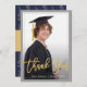 Gold Script Grey & Blue Graduation Photo Thank You Announcement