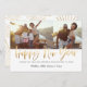 Bold modern gold effect script text, multi photo new year card. With star burst backer design.