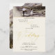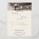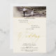 A modern, elegant and minimalist real gold foil beige ivory script wedding with 2 photo square grid collage.
