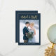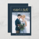 A wonderful wedding image design with a photo of the bride and groom, and faux gold script text. The features of this card can be personalised.