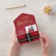 Gold effect stylish script merry christmas with coordinating red and green check tartan backer design. A modern take on a traditional christmas card.