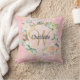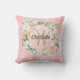 Pretty monogram throw pillow featuring a name and script surname initial that is framed by a delicate watercolor rose garland floral on a pink geode agate background. Personalise to create a special keepsake gift to treasure! Designed by Thisisnotme©