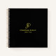 Custom Modern Black And Gold Elegant Script Monogram Template Professional Spiral Square Notebook.