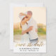 This elegant save the date features shimmering script in faux gold foil with a striped backer and lots of room for additional wedding information, like your wedding website or accommodations details. Upload your own photo and customise the information to include your wedding details.