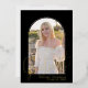 Celebrate your achievement with this gold foil graduate invitation, featuring a graduation two-photo template perfect for any high school or senior grad. Designed with elegant calligraphy script and stylish typography, this grad party invite showcases a classic arch style with a trendy minimal design in simple black and white. Personalise it with your photos and details to create a timeless class of celebration keepsake!