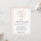 Gold Script Typography Love in Air Bridal Brunch Invitation. Calligraphy script was hand lettered by Audrey Jeanne then graphically turned into a gold glitter dimensional look that is surrounded by pink scroll swirls in the shape of a heart. The reverse side is a hand painted modern watercolor wash in very pale blush pink. All artwork was created by internationally licensed artist and designer, Audrey Jeanne Roberts, copyright.