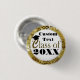 Easily customise these popular round stylish and classy button pins with the year of graduation~shown is 20XX in black stylish font. Room for the graduate's name or the school name, etc. as well. The text colour and font can also be easily changed. Cool gold graphic design with "Class Of" is on a 3d look graphic on white background with a sparkling gold sequins, printed, look frame all around. Realistically printed, not real sequins. Added is a matching cute little black graduation cap / hat with gold tassel that sits above the letter C in Class. Lots of sizes of these buttons are available. Great, fun, for the entire graduating class and guests. Perfect for kids, teens, and men and women graduates of any age! Great for preschool and elementary school, junior middle school, high school seniors, or college seniors and graduate school seniors as well!