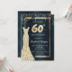 Gold Sequins Dress Dark,Frame, Blue 60th Birthday Invitation