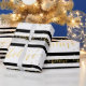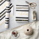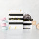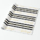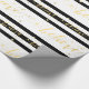 Wrap your Christmas holiday gifts for your friends and family using this beautiful modern holiday wrapping paper with the word "Believe" written in faux gold foil (printed photo effect) handwriting script font on a black and white striped pattern background. Elke Clarke © Available at www.zazzle.com/monogramgallery.