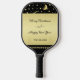 Gold shiny Christmas stars, paws on gold & black Pickleball Paddle