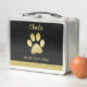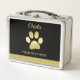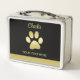 Gold Shiny Dog Paw on black background Metal Lunch Box