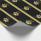Gold Shiny Dog Paw on black background Wrapping Paper
