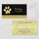 Gold Shiny Dog Paw on black Pet Grooming Service Appointment Card