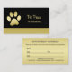 Gold Shiny Dog Paw on black Pet Grooming Service Appointment Card