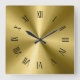 Gold Shiny Metallic Texture Roman Numerals Square Wall Clock