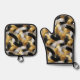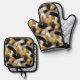 Gold Silver Black Christmas Celebration Oven Mitt & Pot Holder Set
