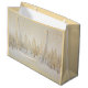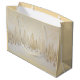 Elegant gold and silver Christmas trees appear on an off-white background in this vintage watercolor painting. Sparkly gold snowflakes fall in a winter wonderland. This elegant rendition is featured on this winter holiday gift bag for festive gift giving.