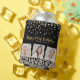 Elegant custom birthday design featuring gold and silver confetti over a black background, modern script typography with the words "Happy 100th Birthday" (in gold), your name and birth date (in silver) and three of your favourite photos framed in metallic gold foil.