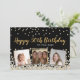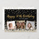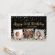 Elegant custom birthday card design featuring sparkly gold and silver confetti over a black background, modern script typography with the words "Happy 50th Birthday" and three of your favourite photos framed in metallic gold foil on the front of the card along with your message and closing on the back.