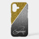 This chic glitter ombre design features a gold on the top left and black on the bottom background with custom name and initial letter monogram. Personalise the case in the text fields with a name and initial, remove both or one or use the edit design tool to select a font style, size, and colour you like.