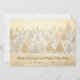 Gold and silver Christmas pine trees look beautiful over a snowy white background in this stylised watercolor painting. Vintage (faux) gold accents frame the scene above and below. There is editable text with the greeting "Merry Christmas and Happy New Year". Be sure to edit the example "from" names and year. On the reverse of this flat card is a matching pattern of gold and silver pine trees on white.