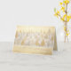 Gold and silver Christmas pine trees parade over a snowy white background in this stylised watercolor painting. Vintage (faux) gold accents the scene above and below, resulting in a really beautiful image. Inside this folded holiday card is a matching pattern of pine trees. And there is editable text with the greeting "Merry Christmas and Happy New Year". Be sure to change the example "from" names and year.