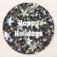 Gold & Silver Stars on Black Holidays Round Paper Coaster