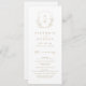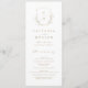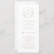 Monogrammed initials framed by elegant crest and hand illustrated botanical leaves, your event details in elegant script and classic font, simple and luxury. Great faux gold and white programs for modern classic wedding, simple formal wedding, elegant botanical garden wedding.