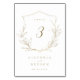 Elegant rustic hand illustrated botanical leaves crest with modern trendy script and classic font in gold and white, Simple and sophisticated. Great table cards for modern classic wedding, simple formal wedding, elegant botanical garden wedding.