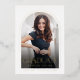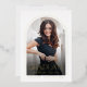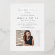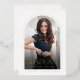 Real gold foil simple graduation invitation features modern script and arch frame, with photo on the back, elegant and minimalist. Custom it with your own photo and grad party information.