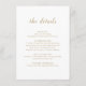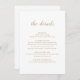 Romantic wedding details card feature stylish script and elegant font event details in gold colour, modern and simple, great for minimalist formal wedding, traditional classic wedding, modern simple wedding.