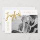 Send joy to friends and family with a Simply Joyful holiday card by Late Bloom Paperie! The modern holiday card features "Joyful" in a gold hand-lettered brush script. Personalise the front of the card by adding your photo, custom greeting, family name, and the year. The card reverses to display a gold and white diagonal stripe pattern.
